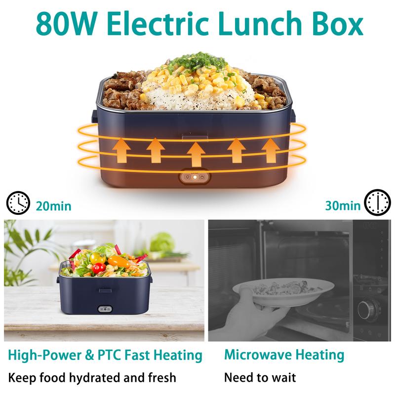 Fast Heating: Our lunch box heats up quickly with a 75W power output. It saves you time as you don't have to wait for your meal to heat up.