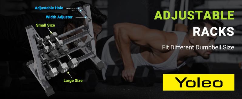 - No Worry Buying: The YOLEO dumbbell rack is an approved product. If you encounter any problems or need further assistance, please contact us via email or Amazon directly. We are committed to resolving all issues to your satisfaction at any time